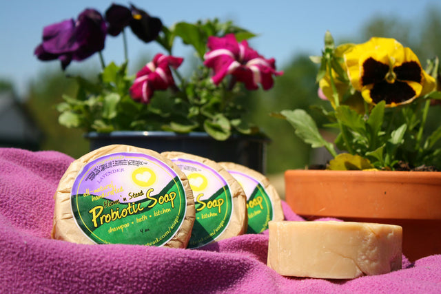 EM Probiotic Soap made with coconut, hemp, olive and castor oils and scented with pure lavender essential oil.